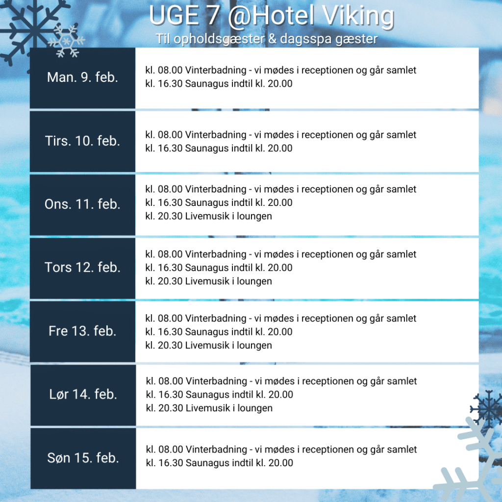 Hos os er vinterferien skabt med fokus på dig, der længes efter ro, nærvær og lidt ekstra spaforkælelse midt i de lettere grå og triste vintermåneder. Et vinterferie ophold på Hotel Viking byder på varme, hygge og forkælelse, så du kan skabe de små øjeblikke, der gør den store forskel under dit ophold.